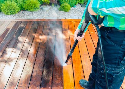 Power washing is effective on various outdoor surfaces including driveways, patios, walkways, decking, brickwork, fences, and exterior walls. We always assess the surface type to ensure safe and effective cleaning without causing damage.
